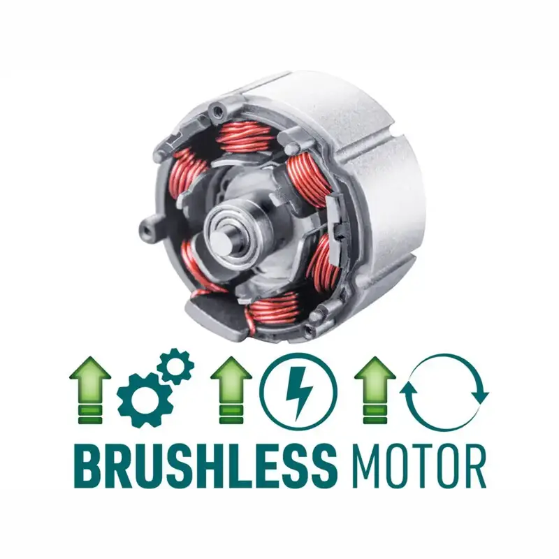 Motor bez uhlíkových kartáčov poskytuje vyšší výkon pri nižšej spotrebe energie, vďaka čomu predlžuje výdrž na batériu a podporuje dlhšiu životnosť náradia.