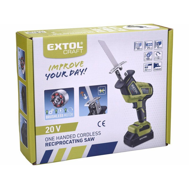 Malá a ľahká jednoručná akumulátorová chvostová píla je ideálna na rezanie dreva, plastov, kovov a iných podobných materiálov v dielni alebo záhrade. Je poháňaná moderným bezuhlíkovým motorom, ktorý ponúka vyššiu životnosť, výkon a nižšiu spotrebu energie v porovnaní s tradičnými uhlíkovými motormi. Flexibilný pílový list umožňuje vykonávať priame a zakrivené rezy, ako aj rezanie v ťažko prístupných miestach, ako sú rohy a pozdĺž múrov, či prerezávanie stromov. Pílový plátok sa ľahko a rýchlo mení bez potreby náradia a je možné ho otočiť pre rezy smerom nahor. Akumulátorový pohon umožňuje používanie píly aj na miestach bez prístupu k elektrickej energii. Spínač obsahuje zámok proti náhodnému spusteniu, integrované LED svietidlo osvetľuje pracovnú plochu a má oneskorené vypnutie pre lepšiu viditeľnosť v tmavých priestoroch. Gumová rukoväť znižuje prenos vibrácií, a spolu s nízkou hmotnosťou, ergonomickým dizajnom a dobrým vyvážením, zabezpečuje pohodlnú a menej únavnú prácu.