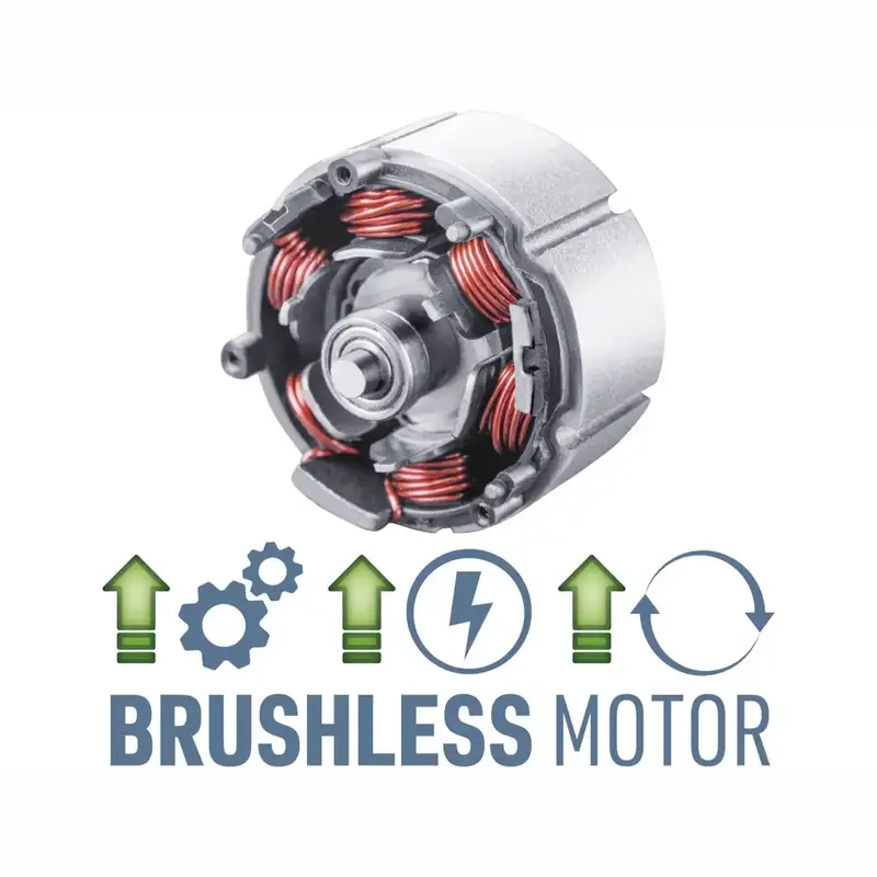 Bezuhlíkový motor prináša vyšší výkon, efektívnejšie využitie energie a dlhšiu životnosť oproti klasickým motorom s uhlíkmi, takže brúska zvládne aj náročnejšie rezacie a brúsiace úlohy.