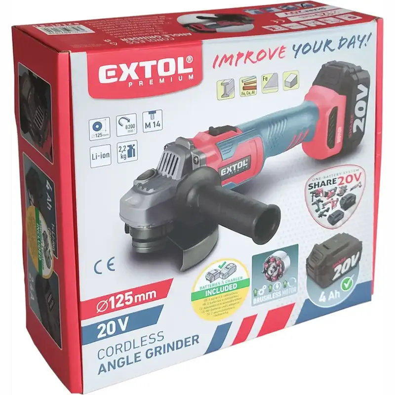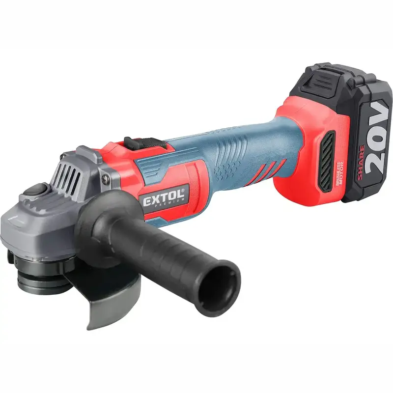 Akumulátorová uhlová brúska Extol Premium Share20V 1x 4Ah, 125mm s bezuhlíkovým motorom je ľahké a výkonné náradie určené na rezacie a brúsiace práce v dielni, na stavbe aj okolo domu. Vďaka kompaktnému telu, pogumovanej rukoväti a 20V Li-ion akumulátoru ponúka voľnosť pohybu bez kábla, vysoký pracovný komfort a spoľahlivý výkon pri každodennom používaní.