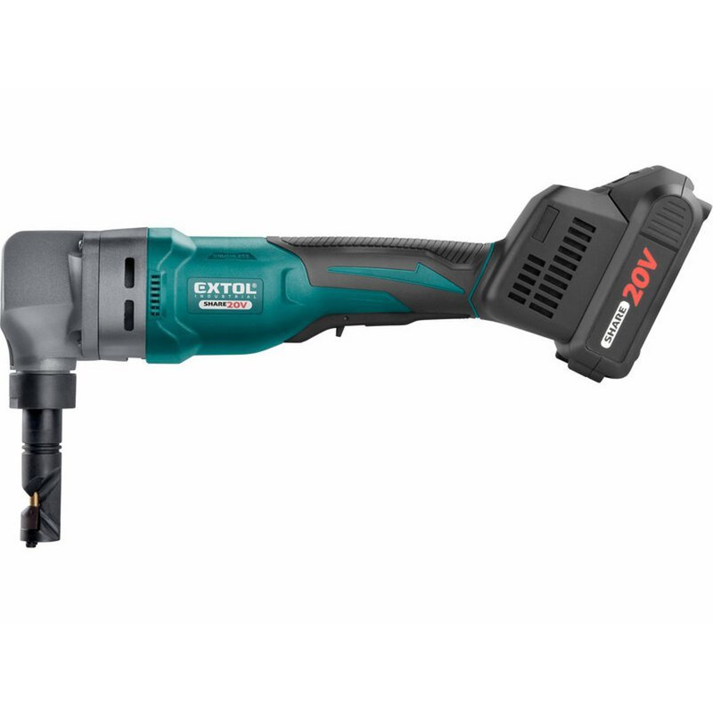 Akumulátorové vystrihovacie nožnice na plech EXTOL Industrial Share20V sú ideálnym nástrojom pre presné a čisté strihanie plochého, vlnitého a trapézového plechu. Vďaka najmodernejšiemu bezuhlíkovému motoru majú tieto nožnice vyššiu životnosť, väčší výkon a nižšiu spotrebu energie v porovnaní s tradičnými motormi s uhlíkovými kefami. Práca s nimi je pohodlná, keďže sú akumulátorové, a tak sa nemusíte zaoberať nepraktickým káblom, čo je ideálne najmä na miestach, kde by manipulácia s káblom bola náročná alebo nebezpečná. Nožnice sú vybavené matricou otočnou o 360°, čo umožňuje vystrihovať rôzne tvary a dosiahnuť precízne rezanie. Minimálny priemer kruhu, ktorý môžete vystrihnúť, je 75 mm. S dlhým spínačom a poistkou proti náhodnému stlačeniu sú bezpečné a komfortné na používanie. S úzkym telom sa nožnice pohodlne držia v ruke, čo zaisťuje jednoduchú manipuláciu. Tento nástroj je ideálny pre profesionálov v stavebníctve, klampiarstve, údržbe, ale aj pre domácich majstrov.