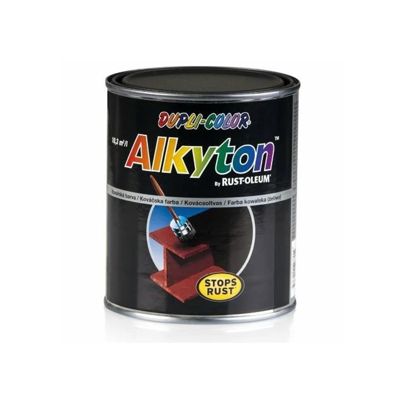 Alkyton kováčsky je náterová hmota - základ a vrchný náter v jednom na báze alkydových živíc. Náter vykazuje dobrú charakteristiku zasychania i pri nižších teplotách. Alkyton kováčsky kryje v 1 vrstve. Účinné antikorózne pigmenty poskytujú dlhodobú antikoróznu ochranu. Výrobok má veľmi dobrú priľnavosť i na skorodovaný povrch po ručnom očistení. Vytvára matný povrch s metalickým leskom. Alkyton kováčsky je určený hlavne na nátery nových i skorodovaných železných kovov v exteriéroch. Alkyton kováčsky je možné aplikovať priamo na kov v prostredí s miernym priemyselným znečistením, alebo s použitím v systéme so základovými nátermi RUST-OLEUM na kovové konštrukcie vystavené agresívnejšiemu priemyselnému prostrediu. Zvýšená antikorózna ochrana sa dá dosiahnúť v systéme s rýchloschnúcim antikoróznym základom PRIMER +. Tam, kde nie je možné povrch dobre očistiť, použite antikorózny základ PENETRÁTOR. Nový i zoxidovaný pozinkovaný plech, inox, ľahké kovy a titánzinok vyžaduje predúpravu pomocou základového náteru GALVINOL. Alkyton kováčsky nie je určený na trvalý ponor.