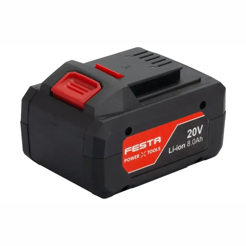 Výkonná Li-ion batéria FESTA 20V/8Ah z radu SHARE 20V je ideálnym zdrojom energie pre náročné aplikácie, ako je brúsenie, rezanie či sekanie. Vďaka modernej technológii Li-ion sa vyznačuje dlhšou životnosťou, minimálnym samovybíjaním a možnosťou dobíjania kedykoľvek bez pamäťového efektu. Batéria je kompatibilná s akumulátorovým náradím FESTA Power x Tools a vybranými strojmi iných značiek s rovnakou päticou.