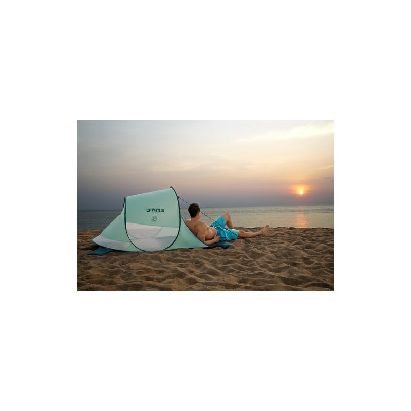 Plážový stan Bestway Pavillo Beach Quick 2 bol vytvorený pre tých, ktorí sa neradi opekajú na pláži na prudkom slnku. Plážové stany poskytujú jednoduché riešenie pre poskytnutie tieňa v horúcich letných dňoch a sú tiež ideálne na uloženie všetkých plážových doplnkov na jednom mieste. So stanom Pavillo Beach Quick 2 budete chránení pred slnečnými lúčmi, keď budete relaxovať na pláži alebo si oddýchnete od celodenného výletu. V zloženom stave nezaberie doma veľa miesta a je vždy pripravený na nové dobrodružstvo.
