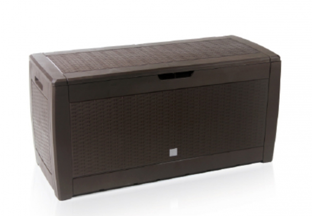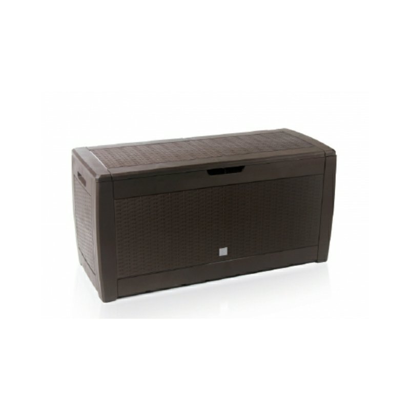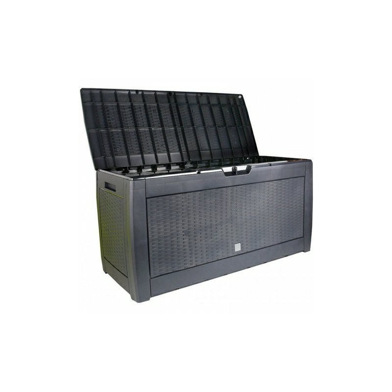 Záhradný box vhodný na uchovávanie záhradného náradia, vybavenia na záhradu, domácich potrieb. Box je na kolieskach a má úchyty pre ľahké presúvanie. Je vodeodolný. Môže byť umiestnený vo vonkajšom prostredí. Box je ľahký, odvetraný a chráni uschované predmety pred náhlym dažďom. Ľahko v ňom uschováte vankúše zo záhradného nábytku, deky, záhradné potreby, menšie nábytok alebo hračky pre deti. Box je možné uzamknúť. Zámok nie je súčasťou balenia.