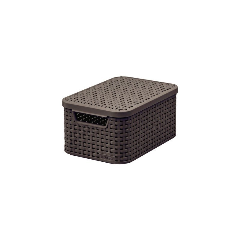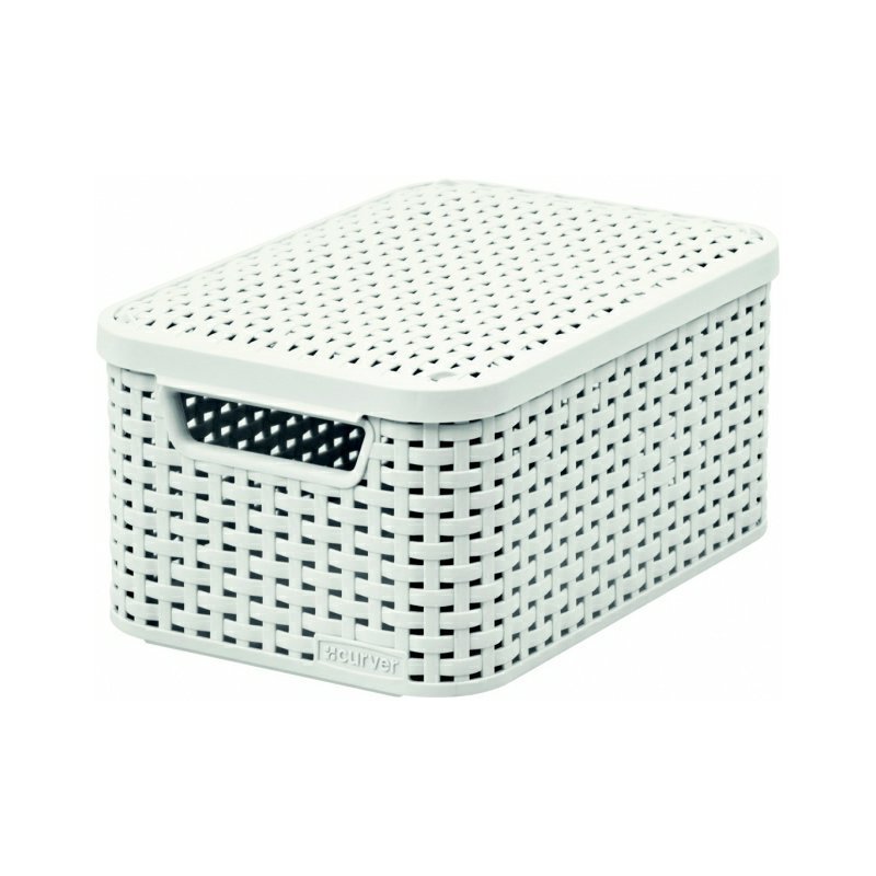 Box úložný plastový Rattan S s vrchnákom 29x19x14cm (biely,hnedý)
