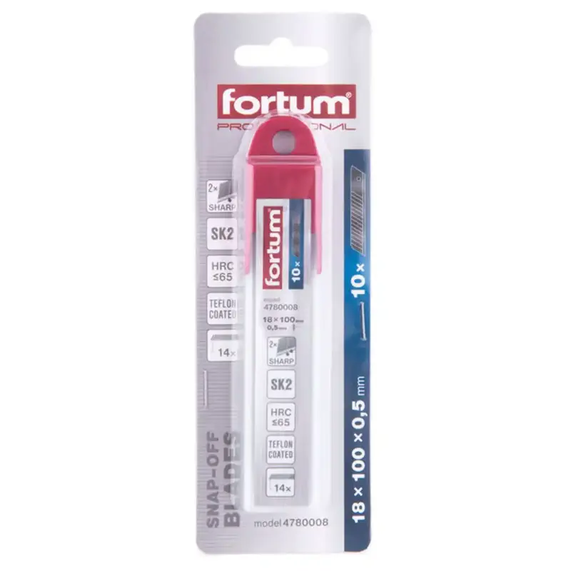Olamovacie brity do univerzálneho noža FORTUM sú praktická spotrebná výbava, ktorú ocení každý, kto často reže kartón, fólie, izolácie či iné bežné materiály. Vďaka tvrdej oceli SK2 a precíznemu ostriu získate čistý rez, dlhšiu životnosť a rýchlu obnovu ostrosti jednoduchým odlomením segmentu.