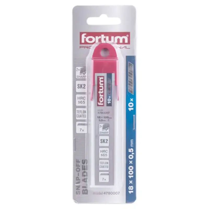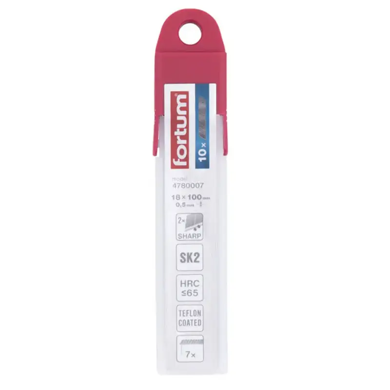 Olamovacie brity do univerzálneho noža FORTUM sú praktická spotrebná výbava, ktorú ocení každý, kto často reže kartón, fólie, izolácie či iné bežné materiály. Vďaka tvrdej oceli SK2 a precíznemu ostriu získate čistý rez, dlhšiu životnosť a rýchlu obnovu ostrosti jednoduchým odlomením segmentu.