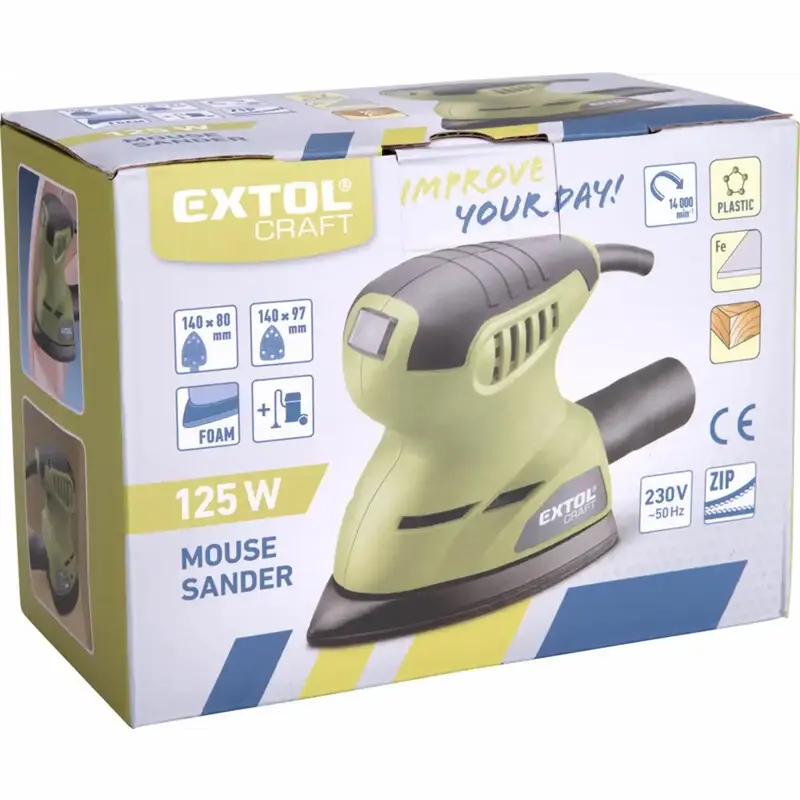 Parametre a príslušenstvo: príkon 125W brúsna základňa 140x95x92mm brúsny papier 140x97x94mm počet kmitov pri voľnobehu 14000 minŻ1 upínanie na suchý zips dĺžka prívodného kábla 2,1m hmotnosť 0,8kg adaptér na pripojenie vysávača, brúsny papier P80
