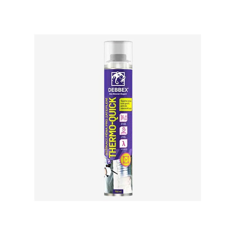 Den Braven THERMO-QUICK je jednozložková polyuretánová pena so špeciálnym aplikátorom na trysku pištole pre sprejový efekt. Pena má výborné termoizolačné vlastnosti a nahrádza tepelnú izoláciu, tam kde nie je možné zatepľovať klasickým spôsobom. Ideálna na ťažko dostupné miesta a nerovné povrchy, ako sú potrubia, garážové brány alebo zásobníky a pod. Pena zabraňuje kondenzácii a pomáha predchádzať tepelným mostom.