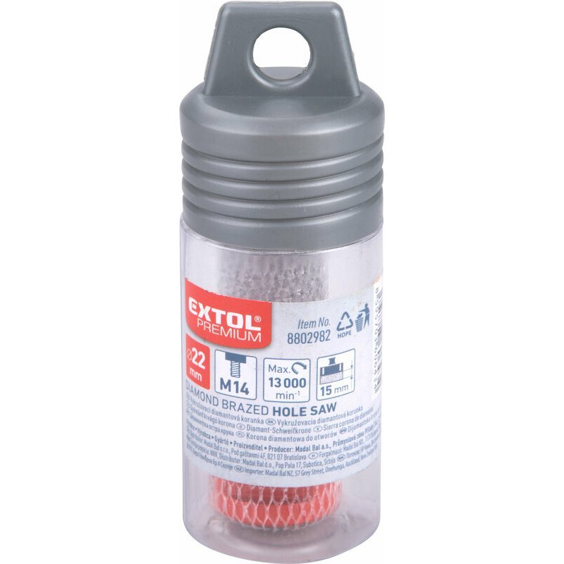 Diamantová vŕtacia korunka 22mm EXTOL Premium pre uhlovú brúsku, závit M14