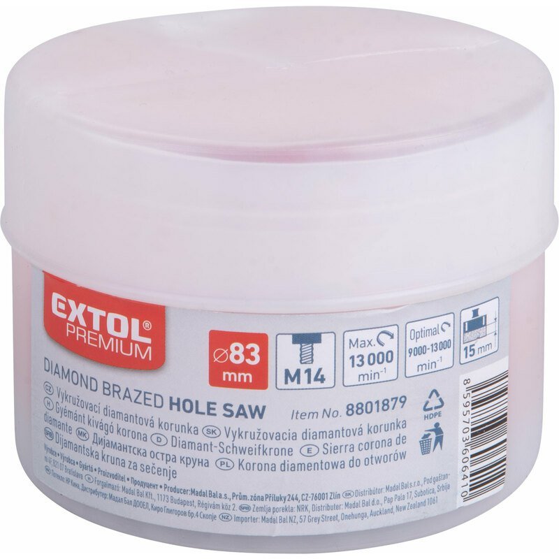 Diamantová vŕtacia korunka do obkladov a dlažby EXTOL Premium je nenahraditeľným nástrojom pre vŕtanie otvorov do rôznych stavebných materiálov, ako sú dlažba, obklad, keramika, sklo, pórobetón a ďalšie. Vďaka bohatému nánosu diamantovej vrstvy je schopná efektívne a presne vŕtať otvory bez ohľadu na tvrdosť materiálu. Korunku je možné používať aj bez chladenia vodou, čo zjednodušuje a urýchľuje prácu.