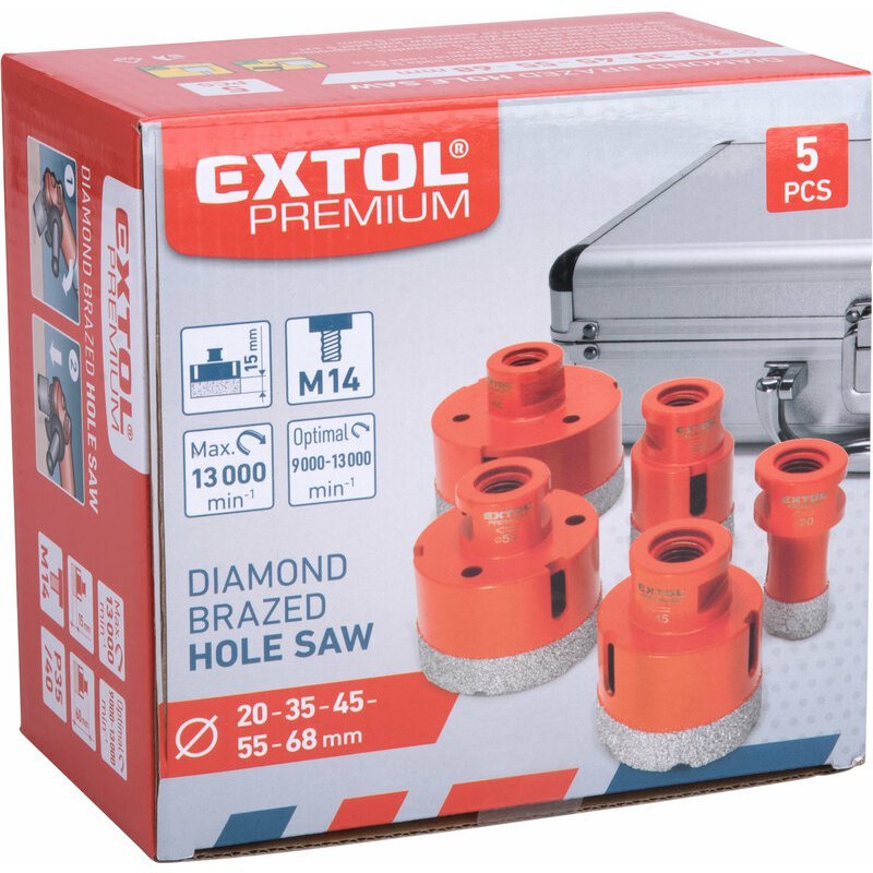 Diamantové vykružovacie korunky 20-68mm, M14, 5-dielna sada EXTOL Premium