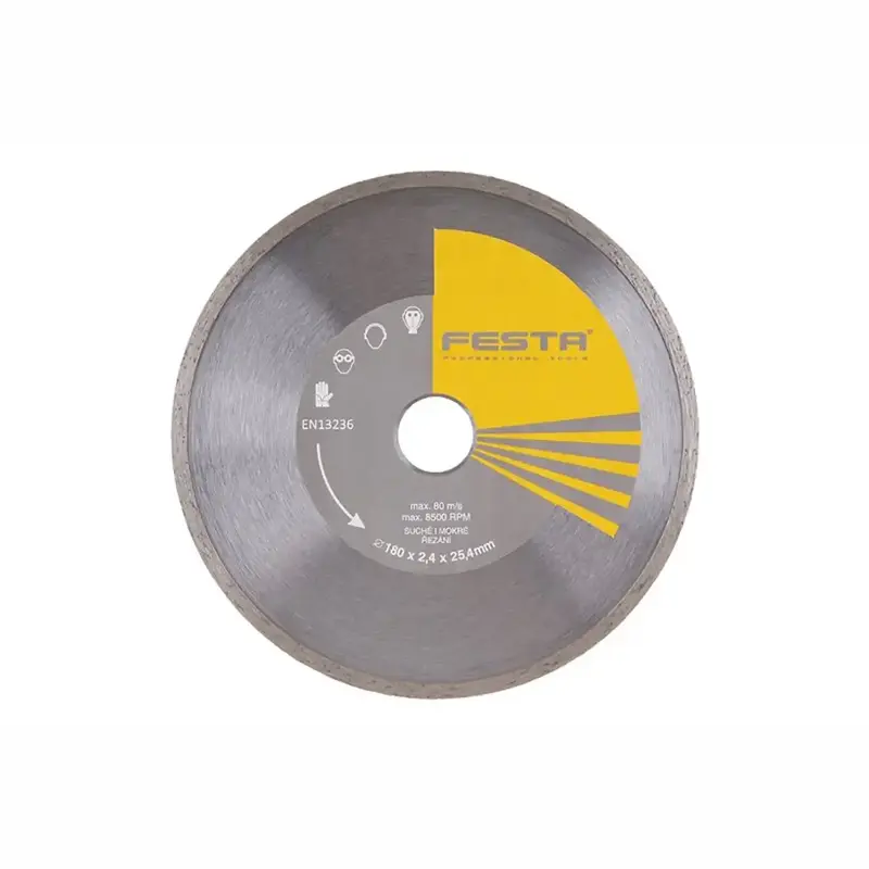 Profesionálny plný diamantový kotúč na čisté a presné rezanie dlažby, obkladov, betónu či kameňa. Ideálny pre stavebné práce aj domácich majstrov, s dlhou životnosťou a vysokou presnosťou rezu.