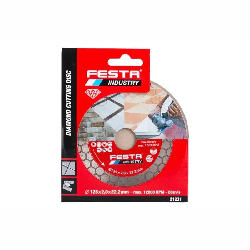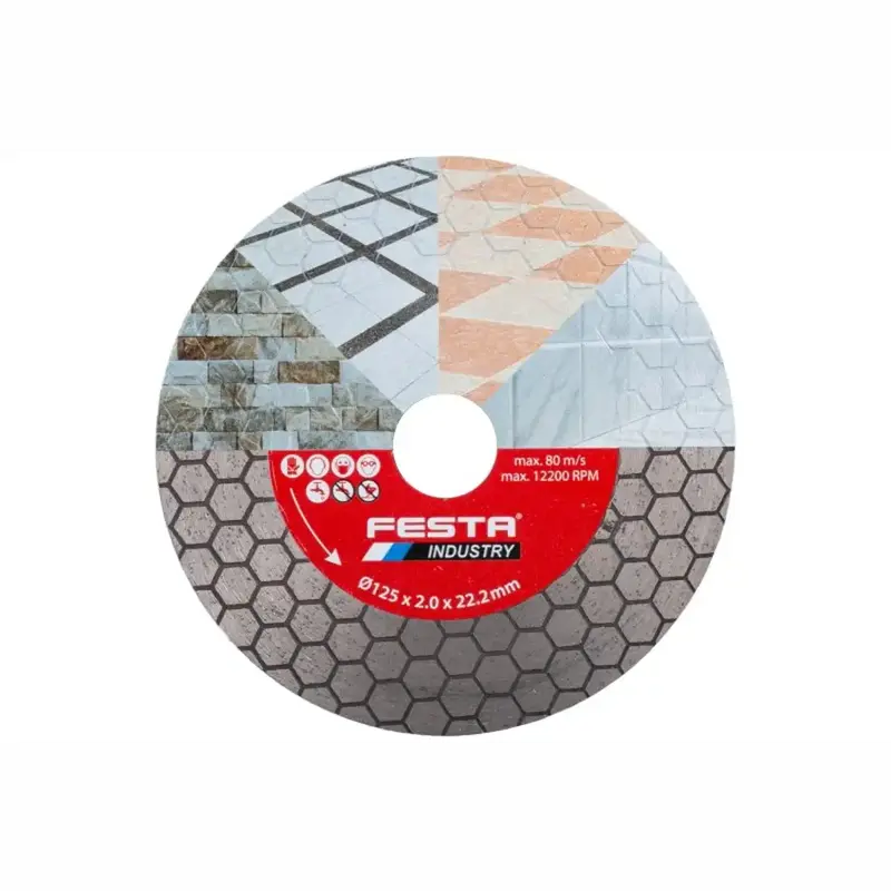 Parametre produktu Diamantový plný kotúč na tvrdé obklady, keramiku a sklo 125x2,0x22mm FESTA Industry