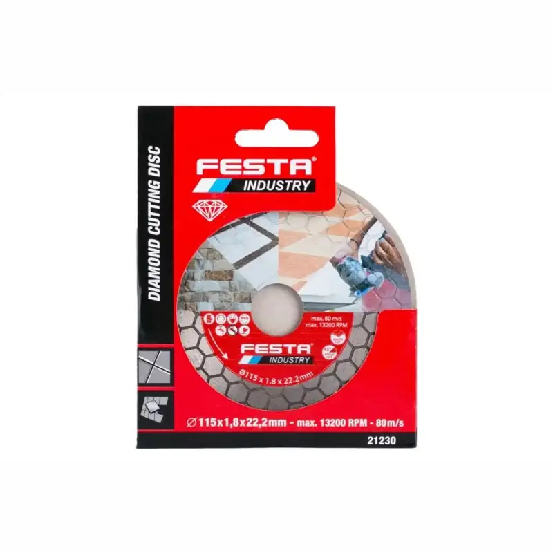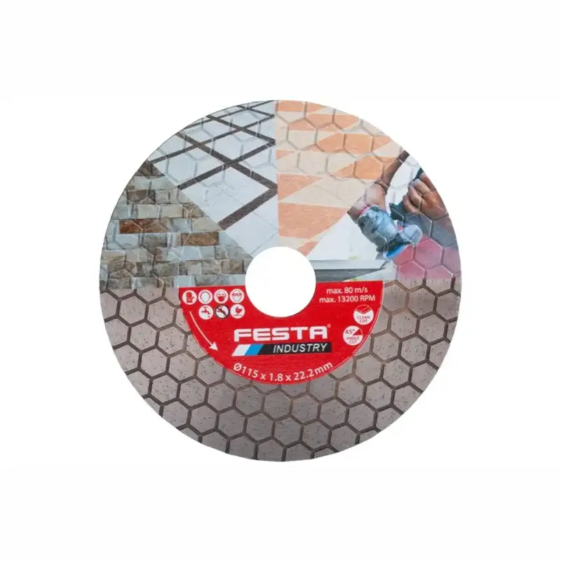 Diamantový rezný kotúč FESTA INDUSTRY je spoľahlivá voľba na rýchle a presné rezanie rôznych stavebných materiálov. Vďaka univerzálnemu použitiu na suché aj mokré rezanie a štandardnému upínaciemu otvoru 22,2 mm je ideálny pre väčšinu uhlových brúsok v dielni aj na stavbe.