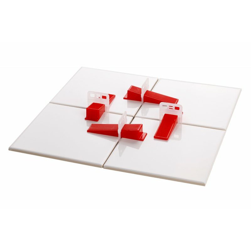 Dištančné klinky do spony na obklad a dlažbu. Nivelačný systém je určený na presnú pokládku dlaždíc na podlahy aj steny a na odstranenie prípadného výškového rozdielu medzi dlaždicami. Skladá sa z dištančných spon a nivelačných klínkov vyrobených z kvalitného plastu. Distančné spony nám určujú šířku špáry, po zaschnutí podkladu ľahko odstránite odkopnutím.