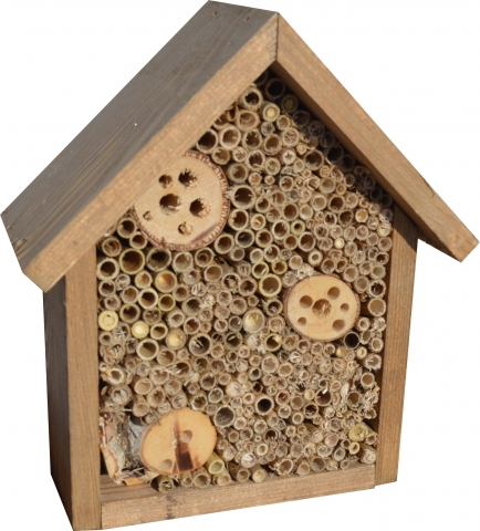 Domček pre včely samotárky 19x9,5x22cm. Včely samotárky sú veľmi dobrými opeľovačmi, dokonca lepšími ako včela medonostná. Najmä čo sa týka opeľovania počas zlého počasia a opeľovania cudzoopelivých rastlín.