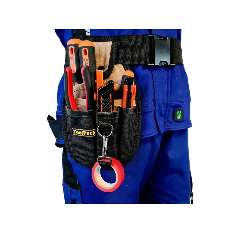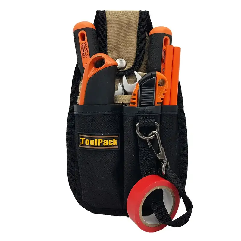 TOOLPACK Compact Polyester Tool Holder “SMART” je kompaktné puzdro na náradie pre profesionálov aj domácich majstrov. Udrží najpoužívanejšie náradie vždy po ruke, zrýchli prácu a pomôže udržať poriadok v nástrojovej výbave vďaka premyslenému členeniu a odolnému 600D polyesteru v čierno–khaki prevedení.