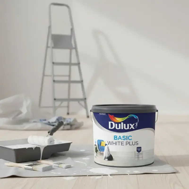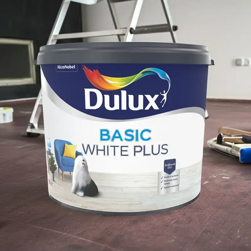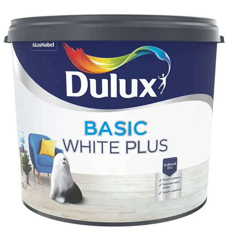 Interiérová biela farba na steny a stropy Dulux Basic White Plus je spoľahlivou voľbou pre každého, kto hľadá snehovo biely odtieň, dokonalý matný vzhľad a veľmi dobré krytie za výhodnú cenu na m2. Je vhodná na dekoratívne aj ochranné nátery v interiéri a vďaka nízkemu obsahu VOC je takmer bez zápachu, ľahko sa nanáša a pri maľovaní minimálne kvapká.