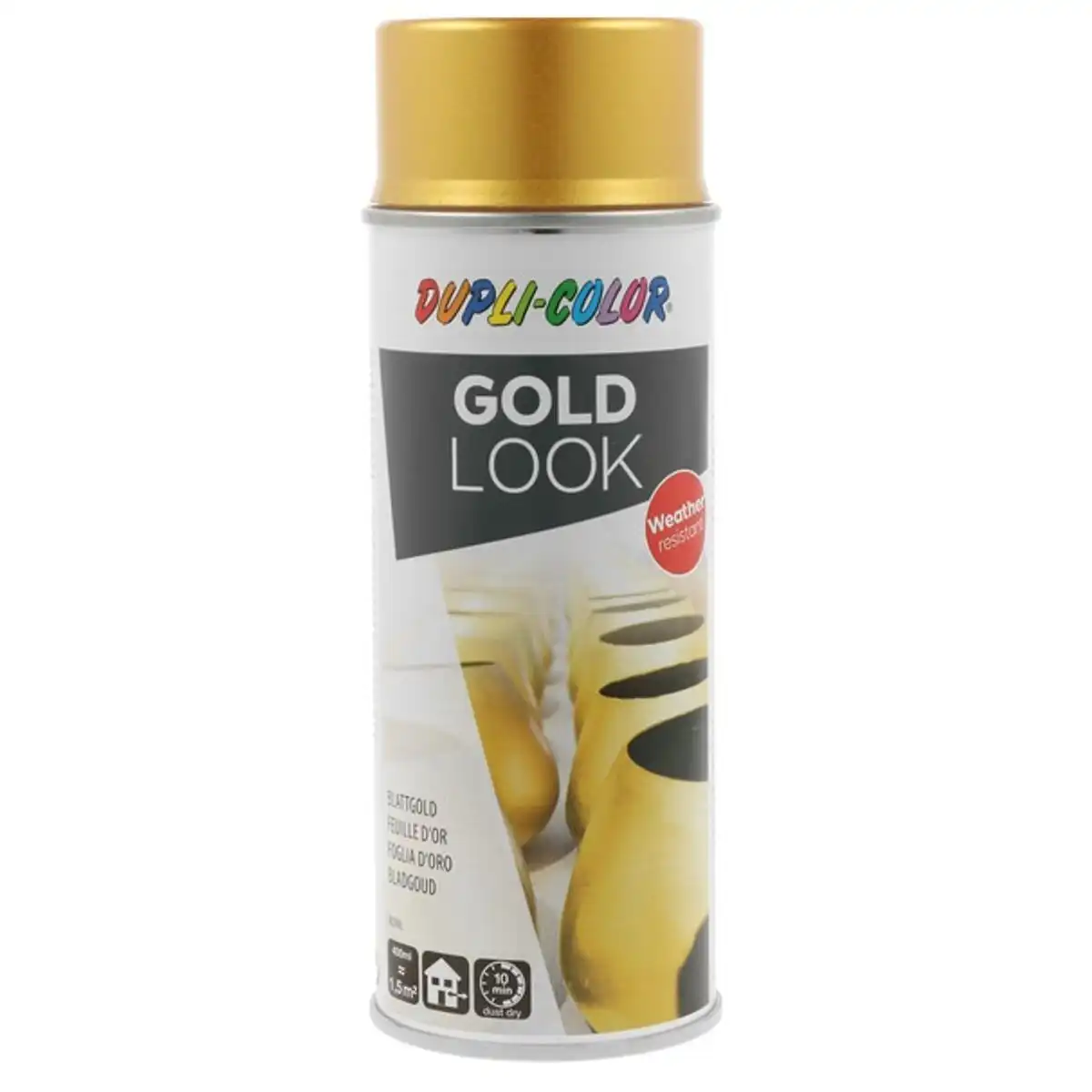 Dupli Color EFFECT BLATTGOLD / BLATTSILBER, lístkové zlato a striebro 400ml farba v spreji. Rýchloschnúci akrylový lak pripomínajúci lístkové zlato a striebro. Vysoký lesk, odolný veči oteru a preto je určený aj do exteriérov. Vhodný na kov, sklo, keramiku, drevo, papier a pod. Doporučujeme základovať DC efekt primer biely + 156366