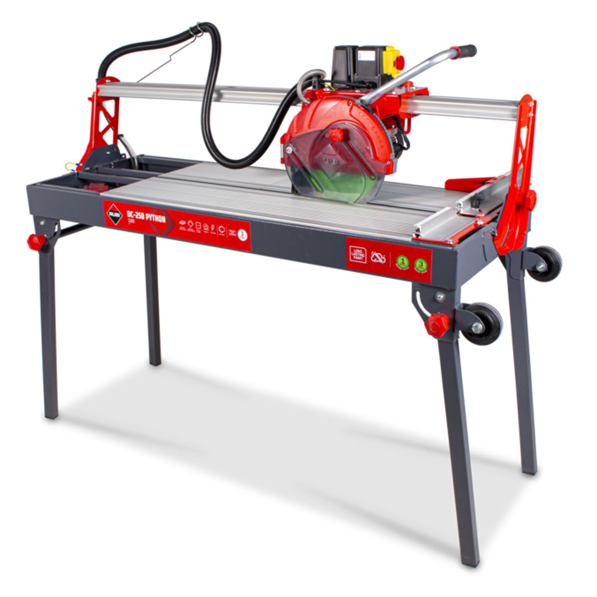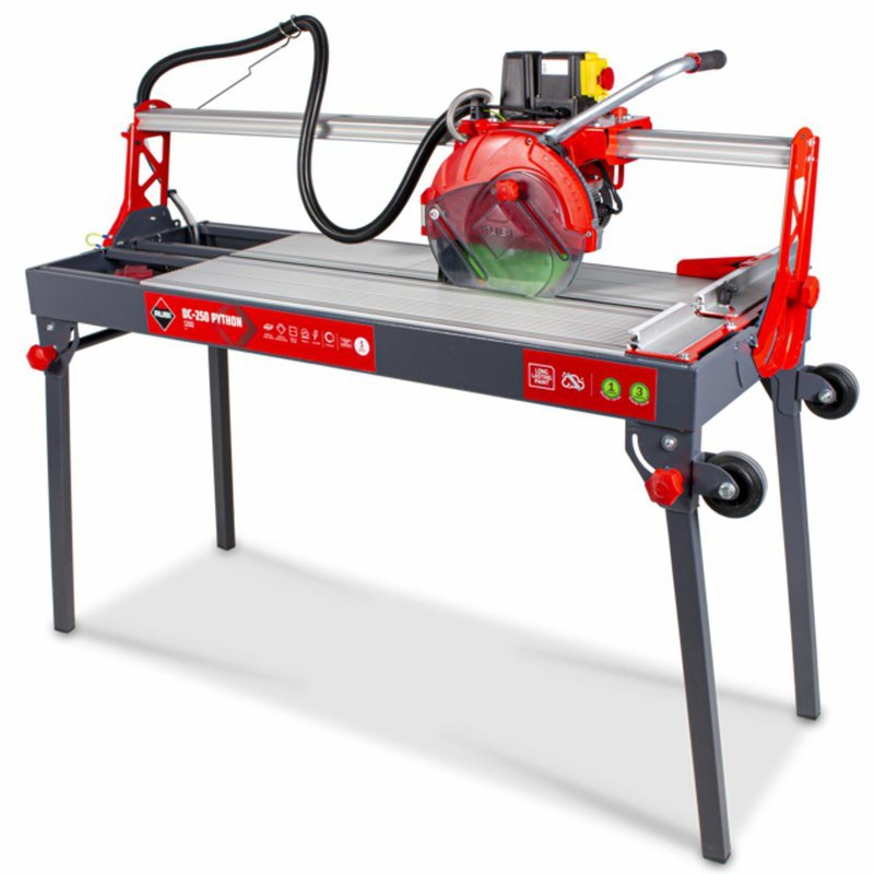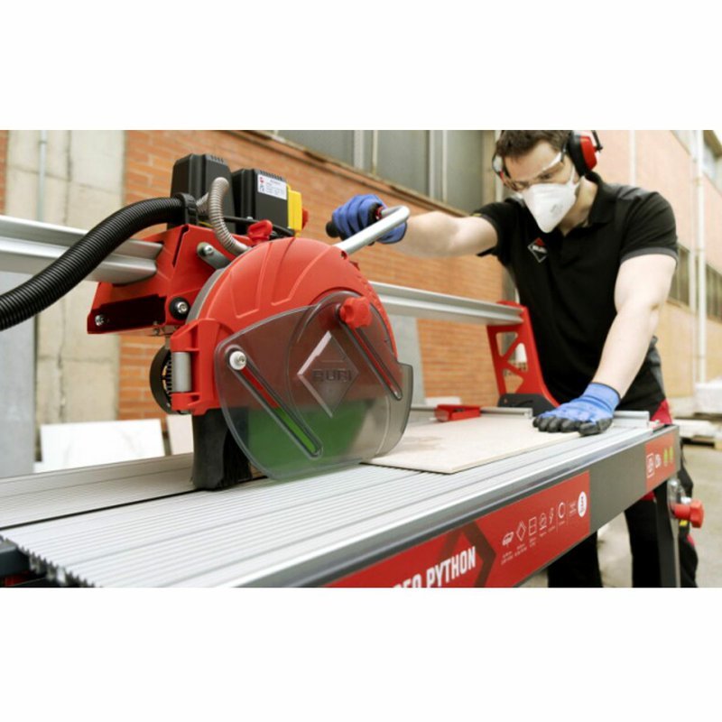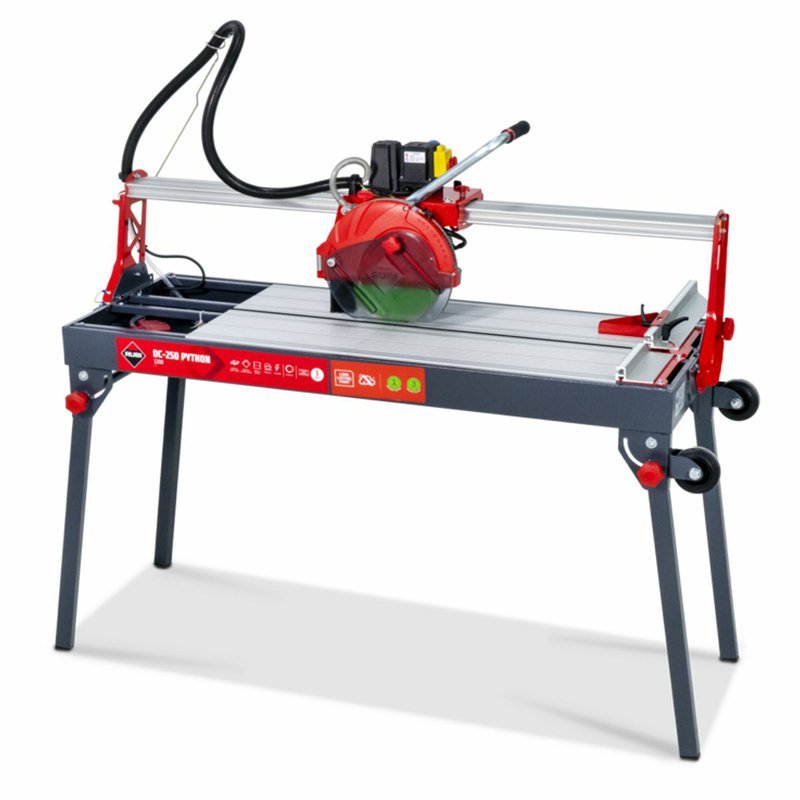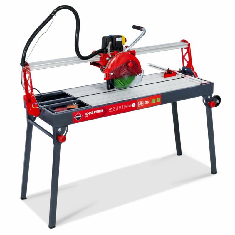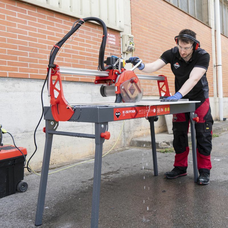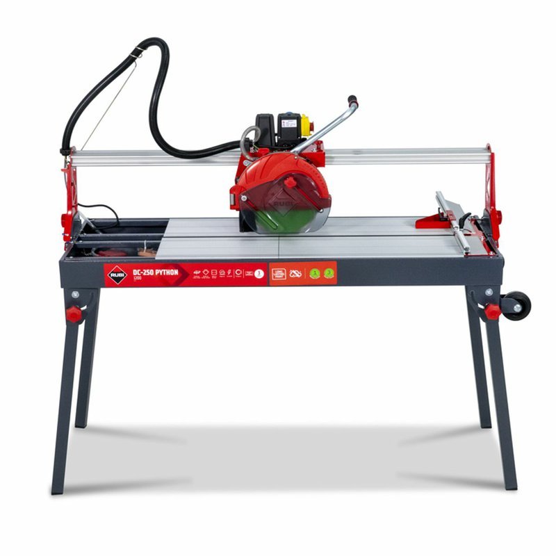 Elektrická rezačka RUBI DC-250 PYTHON je vysoko presný nástroj s pohyblivou hlavou, ktorý poskytuje maximálnu funkčnosť a spoľahlivosť pri profesionálnej pokládke keramických dlaždíc. Rezačka RUBI je ideálna na intenzívne rezanie dlaždíc a glazovanej kameniny, ako aj na rezanie porcelánovej kameniny a príležitostne prírodného kameňa. Pohyblivý motor s ložiskami zaručuje presnosť a kvalitu rezu, vrátane možných pokosových rezov. Rezačky obsahujú nastaviteľný chladiaci systém C3 PYTHON, odnímateľné hliníkové stoly, sklápacie nohy s kolieskami a diamantový kotúč CEV-SUPERPRO. Systém ZERO DUST znižuje produkciu prachu a zlepšuje bezpečnosť pri práci. Veľká pracovná plocha poskytuje lepšiu ergonómiu pre profesionálov.