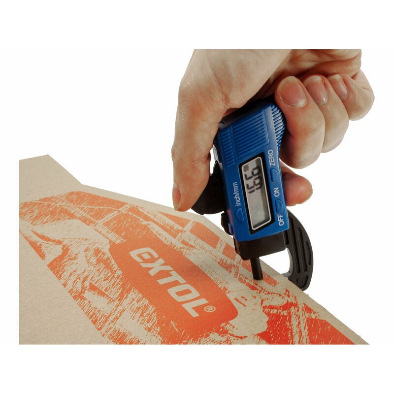 Digitálny merač hrúbky EXTOL Craft sa používa na meranie hrúbky rôznych materiálov, ako sú kovy, plasty, sklo, drevo a podobne. Merač hrúbky je vhodný pre použitie v priemysle, stavebníctve, ale aj v hobby segmente a obchode, teda všade v oblastiach, kde je dôležité kontrolovať kvalitu a správnu hrúbku materiálu. Digitálny merač hrúbky umožňuje presné meranie hrúbky materiálu, čo ho robí nenahraditeľným pomocníkom pri monitorovaní kvality výrobkov a pri výrobe s presne definovanými toleranciami. Namerané hodnoty sa zobrazujú na prehľadnom LCD displeji, čo výrazne urýchľuje prácu oproti klasickým meračom hrúbky.