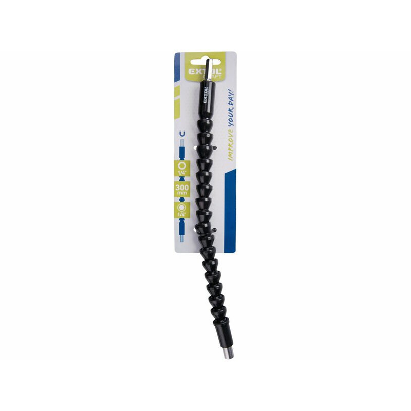 Praktický flexibilný magnetický nadstavec EXTOL Craft na bity do vŕtačky alebo akumulátorového skrutkovača. Účinná pomôcka pre skrutkovanie v tažšie prístupných miestach. Nadstavec si drží zvolený tvar, plastový ochranný obal sa pri práci nepretáča, takže je možné ho bez problémov pridržiavať rukou.