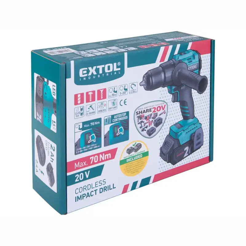 Akumulátorová vŕtačka s príklepom EXTOL Industrial je praktický univerzál do dielne aj na stavbu, keď potrebujete spoľahlivý výkon pri skrutkovaní aj vŕtaní do dreva, kovu či muriva. Bezuhlíkový motor prináša efektívny chod a dlhšiu životnosť, zatiaľ čo vysoký krútiaci moment a príklepový režim pomáhajú zvládnuť aj náročnejšie práce. Ergonomické telo, LED osvetlenie a robustné celokovové skľučovadlo zvyšujú komfort a istotu pri každom úkone.