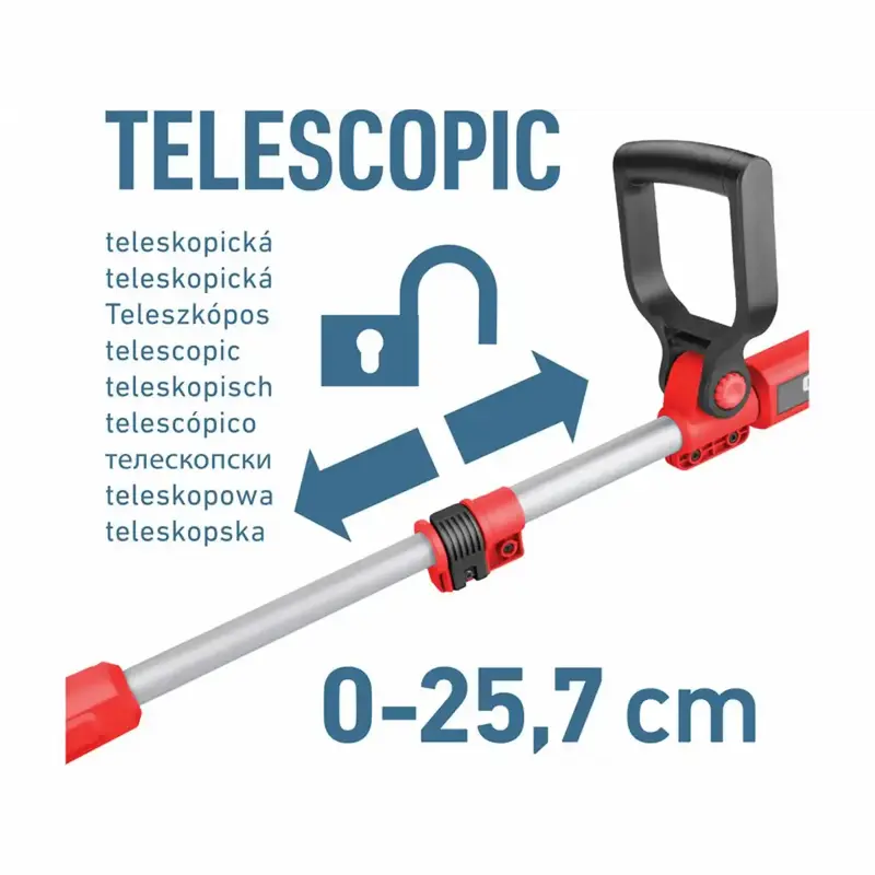 - Predĺženie teleskopickej rukoväti: 0–25,7 cm