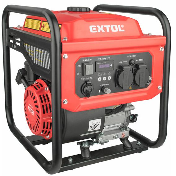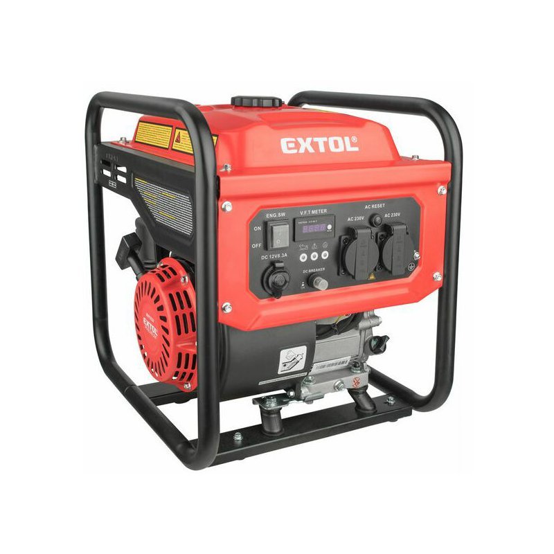 Invertorová elektrocentrála EXTOL Premium je určená na napájanie elektrospotrebičov v miestach, kde nie je dostupná elektrická distribučná sieť. Moderný invertorový systém výrazne zmenšil hmotnosť a rozmery elektrocentrály, avšak pri zachovaní vysokého elektrického výkonu, ktorý je dostatočný na napájanie väčšiny elektrospotrebičov. Možno použiť nielen na napájanie citlivých elektrospotrebičov, napr. počítačov a inej kancelárskej techniky, TV, lekárskych prístrojov a pod., ale aj na napájanie elektronáradia na prácu na stavbách, v mobilných servisných strediskách alebo na rekreačné účely na použitie na chatách, v karavanoch, lodiach a pod. Citlivé elektrospotrebiče nesmú byť súčasne pripojené so spotrebičmi s elektromotorom, ktoré majú rozbehový príkon, pretože pri prúdovom náraze sa môžu poškodiť. Centrála je vybavená dvoma 16A zásuvkami na 230V, ktoré umožňujú pripojiť bežné spotrebiče s príkonom až 3,2kW. Ďalej je vybavená 12V/8,3A cigaretovou zásuvkou s jednosmerným prúdom, ktorá sa dá tiež využiť pre zariadenia s touto zástrčkou, ako napr. USB nabíjačka, vysávač, autochladnička atď. Multifunkčné digitálne počítadlo umožňuje merať celkové prevádzkové hodiny od prvého štartu, prevádzkové hodiny od posledného štartu, aktuálne napätie a frekvenciu.