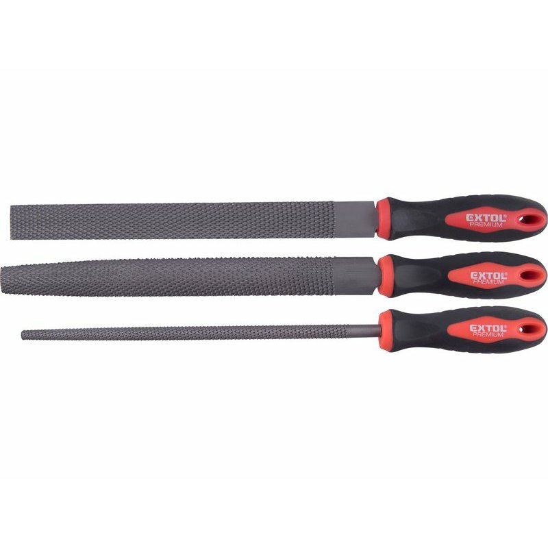 Rašple 250mm s plastovou rúčkou, 3-dielna sada, uhlíková oceľ. Krížový sek strednej hrubosti (č.2) pre bežné potreby obrábania v domácnostiach, zámočníckych dielňach aj vo výrobe. Ergonomická rukoväť s mäkčenou TPR gumou a otvorom pre zavesenie.