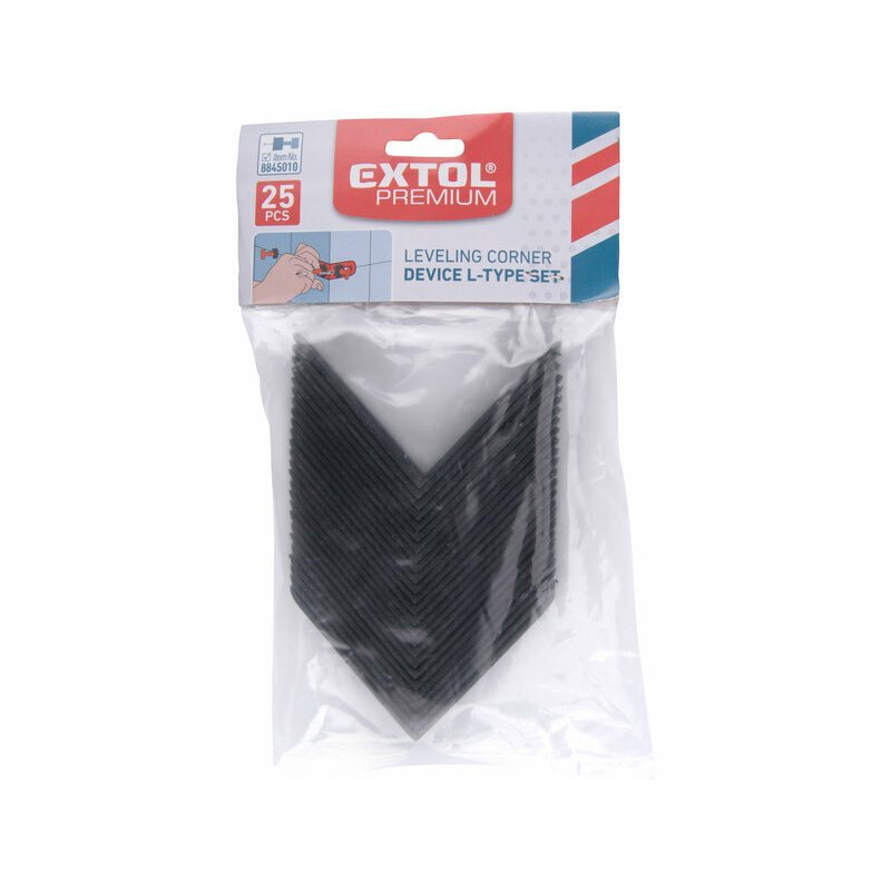 Rohový profil EXTOL Premium k nivelizačným klipom 8845010, 25ks/bal. Doplnok pre lepšiu fixáciu nivelizačných klipov pri obkladaní rohov.