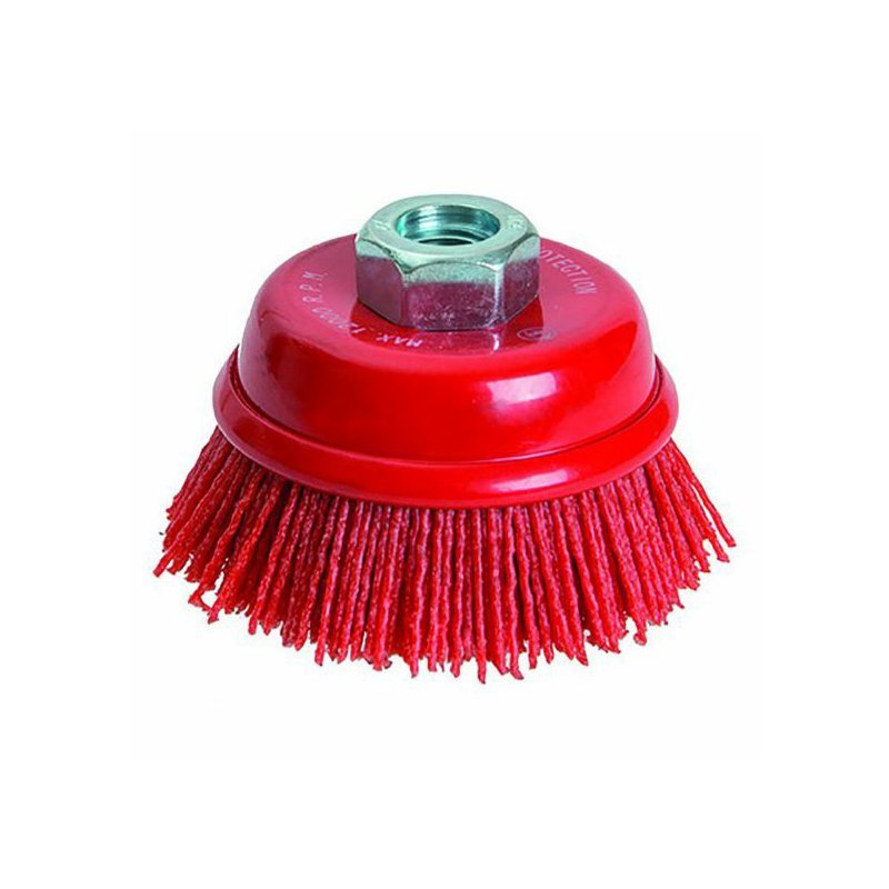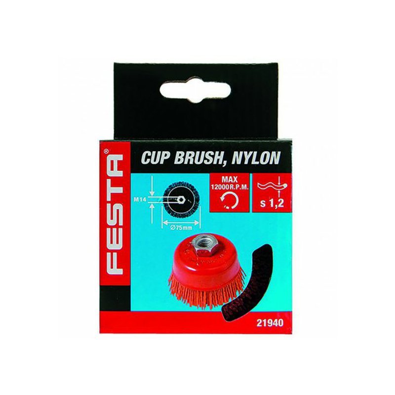 Rotačná kefa FESTA s vlnitý nylonovým drôtom je vhodná na leštenie, čistiace práce, odstránenie starých náterov, drátkovanie dreva. Hrnčekové usporiadanie štetín je vhodné pre opracovanie väčších plôch, ako sú hranoly, dosky, plechy apod.Nylonový kartáč so stopkou je určený pre elektrické a akumulátorové uhlové brúsky s upínaním pomocou poistnej matice M14.