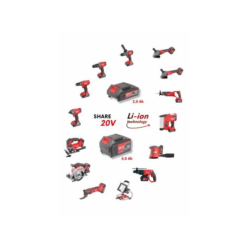 • stroje sú súčasťou systému FESTA SHARE20V s možnosťou využívať Li-ion batérie 2.0 Ah a 4.0 Ah vo všetkých strojoch