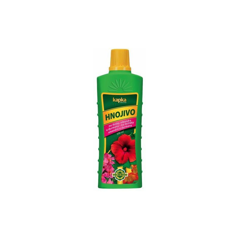Kvapalné hnojivo na ibišteky, oleandre a durmany Hnojivo ES-NPK roztokové 7-5-6 Hnojivý roztok pripravíme zmiešaním 15 ml hnojiva (po okraj naplnený vrchnák)s 3 litrami vody. Rastliny hnojíme 1-2 krát za týždeň v čase vegetácie (marec-október), v čase vegetačného kľudu(november-február) iba 1 krát za mesiac. Hnojivý roztok aplikujeme na povrch substrátu-zeminy. Pred použtím obsah fľaše dôkladne pretrepeme. Hnojivo je určené na prihnojovanie všetkých druhov ibištekov, oleandrov a durmanov.