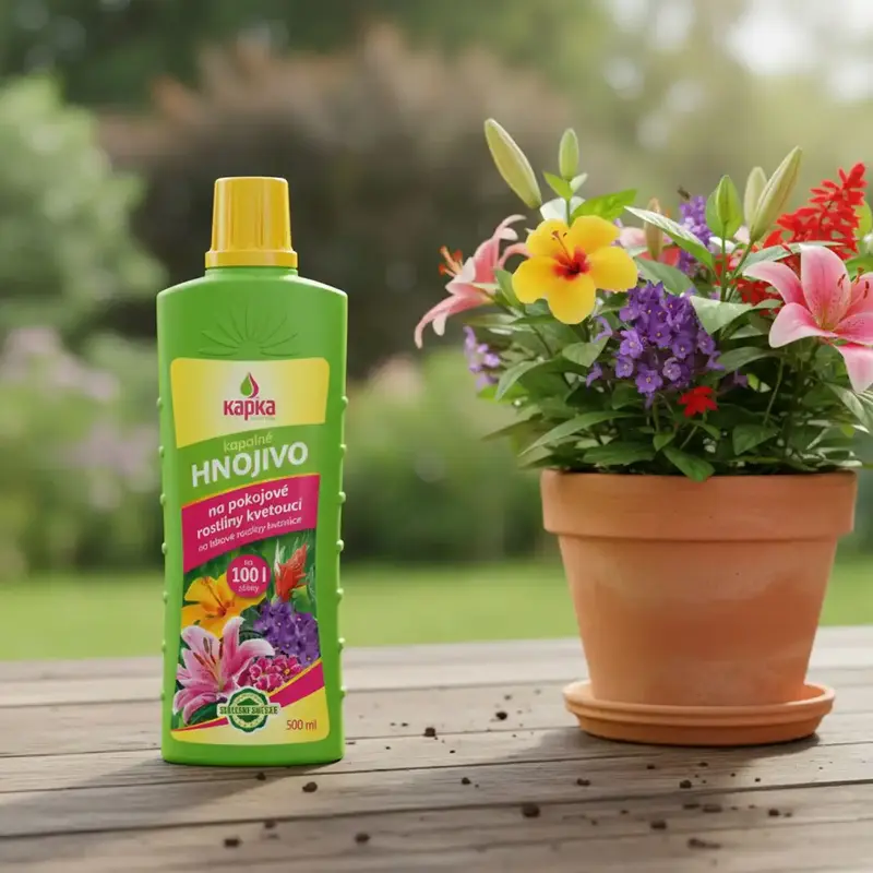 Tekuté hnojivo pre kvitnúce izbové rastliny KAPKA je praktická voľba, keď chcete podporiť bohaté nasadzovanie pukov, dlhšie kvitnutie a zdravý rast. Jednoducho sa riedi s vodou, dá sa použiť do zálievky aj na list a živiny sú rastlinám dostupné rýchlo po aplikácii.
