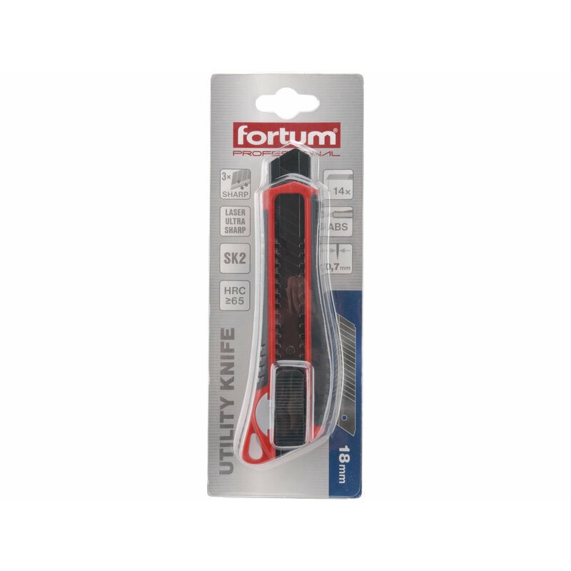 Univerzálny pracovný nôž s odlamovacou čepeľou z kvalitnej laserom brúsenej ocele. Pevné zaistenie čepele proti posuvu zaisťuje systém automatickej aretácie Auto-lock. Telo z kvalitného ABS plastu umožňuje komfortné rezanie a zároveň ponúka vyššiu odolnosť proti poškodeniu noža pri náraze alebo páde. Tento profesionálny odlamovací nôž ocenia všetci domáci majstri, no najmä remeselníci. Využijete ho na rezanie kartónu, podlahových krytín z PVC, kobercov, drevených prvkov a pod.