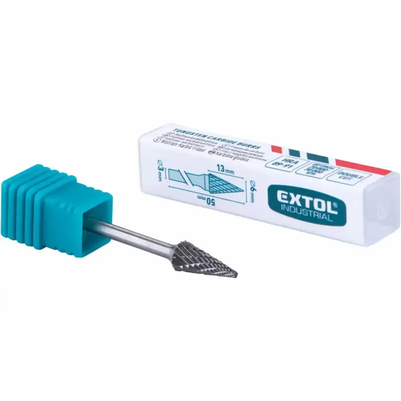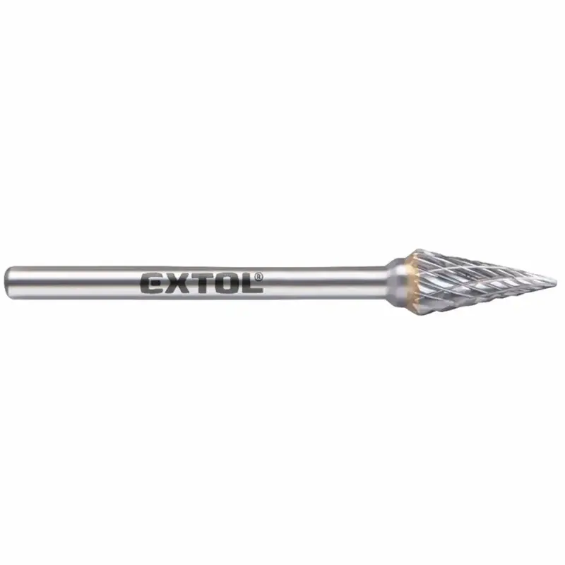 Karbidová fréza EXTOL INDUSTRIAL s kónickým špicatým tvarom je presný nástroj určený na detailné opracovanie kovových materiálov aj v ťažko prístupných miestach. Je vyrobená z kvalitného spekaného karbidu a poskytuje vysokú efektivitu pri opracovaní kovov až do tvrdosti 65HRC. Vďaka tenkej špicatej konštrukcii je ideálna na jemné detaily, vnútorné hrany či zárezy.