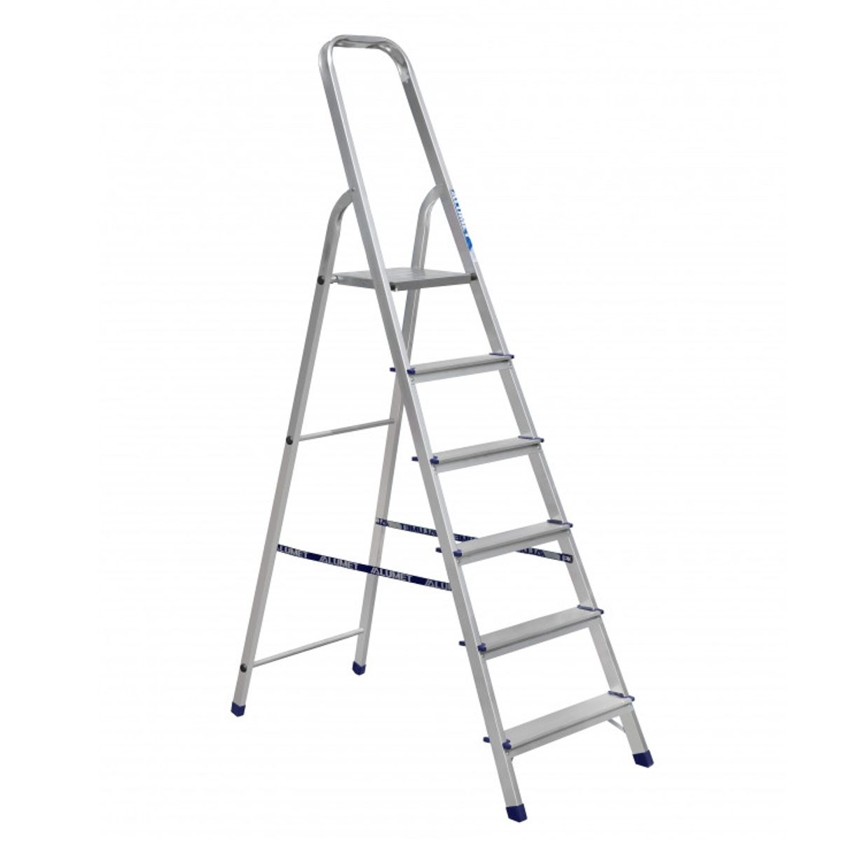 Parametre produktu Hliníkové schodíky 6 priečok, výška plošiny 1,23m, pracovná výška 3,33m