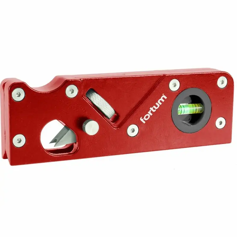 Hoblík na zrážanie hrán FORTUM s hliníkovým telom a dvomi profilovými nožmi (45° a R3) je praktický nástroj na čisté skosenie a zaoblenie hrán pri práci s drevom, materiálmi na báze dreva a plastmi. Vďaka kompaktným rozmerom a nastaviteľnej hĺbke záberu poskytuje presné výsledky bez triesok – ideálny pre profesionálov aj domácich majstrov.