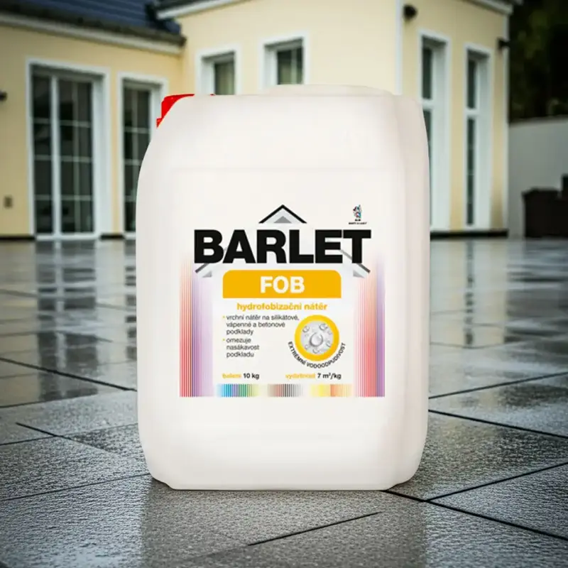 BARLET FOB PRO V4019F je hydrofobizačný náter určený na dodatočné vytvorenie povrchu, ktorý odpudzuje dažďovú vodu. Ideálny najmä na zvýšenie vodoodpudivosti silikátových a vápenných farieb a betónu – všade tam, kde potrebujete ochranu pred zatekaním a fľakmi od dažďa.