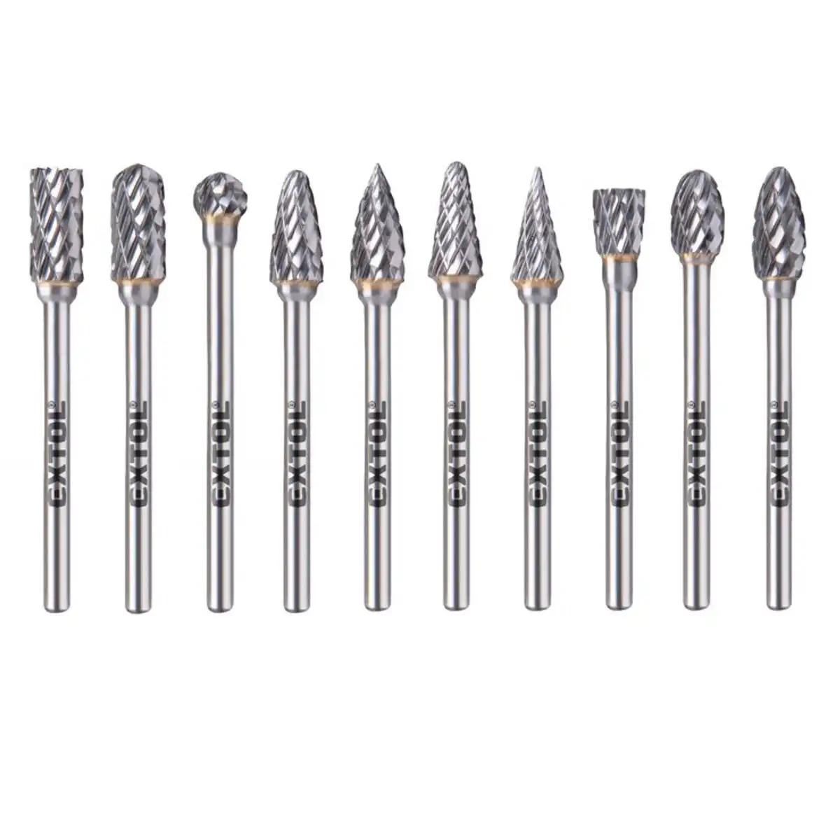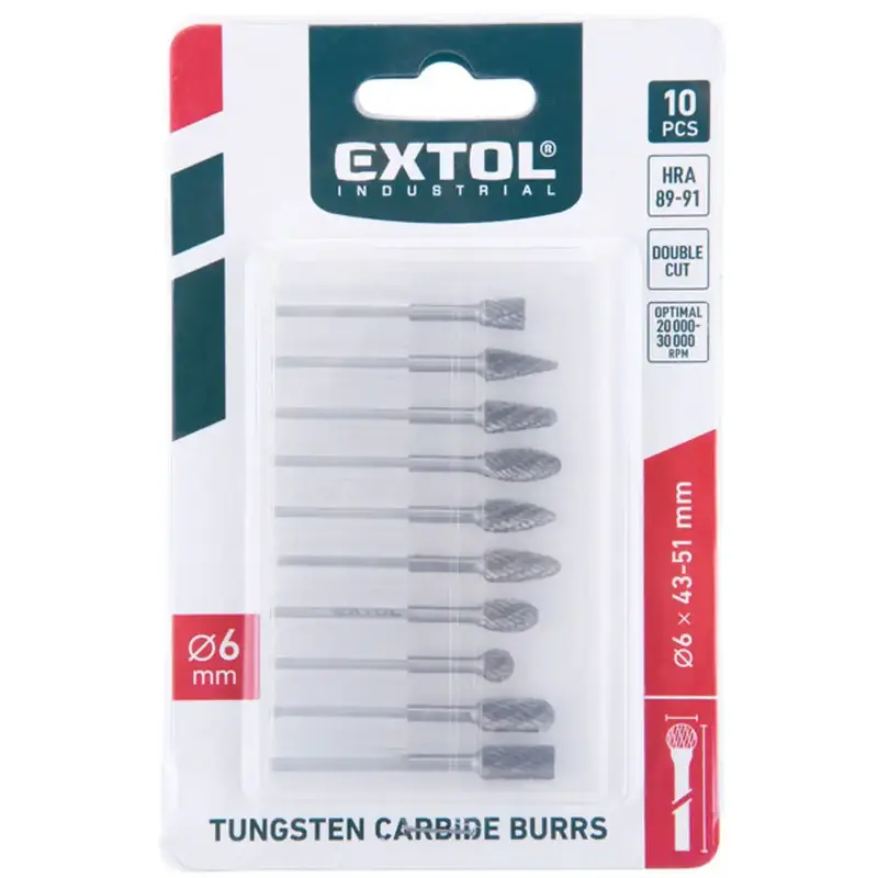 Sada karbidových fréz EXTOL je praktické príslušenstvo do mikronáradia a priamych brúsok na presné opracovanie kovu. Vďaka volfrámovému karbidu sú frézy určené na rýchle odhrotovanie, brúsenie a tvarovanie materiálu – ideálne do dielne aj na jemnejšie práce, kde rozhoduje presnosť.