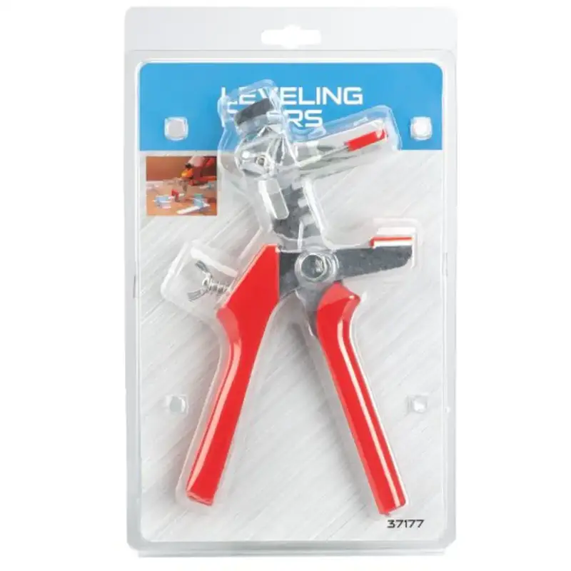 Kliešte nivelačné na dlažbu a obklady. Nivelačný systém je určený na presnú pokládku dlaždíc na podlahy aj steny a na odstranenie prípadného výškového rozdielu medzi dlaždicami. Skladá sa z dištančných spon a nivelačných klínkov vyrobených z kvalitného plastu. Kliešte sú určené na urýchlenie inštalácie a nastaviteľným mechanizmom možno regulovať tlak na dlaždice.
