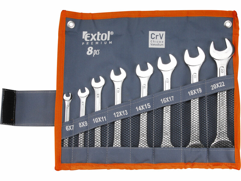 Kľúče vidlicové Cr-V, 8-dielna sada, 6-22mm
