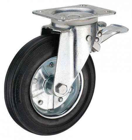 Koliesko kontajnerové otočné s platňou a brzdou, priemer 160mm, výška 197mm, do 160kg,oceľ