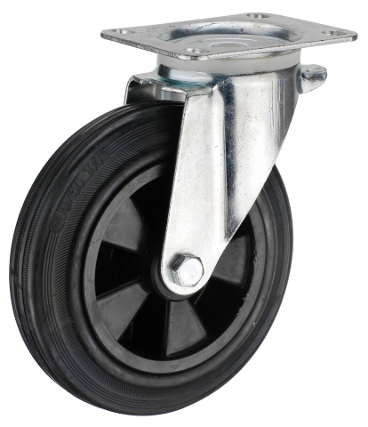 Kontajnerové otočné koliesko s kovovou platňou a plastovým diskom, priemer 160mm, výška 197mm, maximálne zaťažene do 160kg