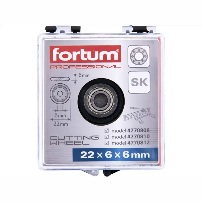 Rezacie koliesko s ložiskom FORTUM je spoľahlivý náhradný diel pre rezačky obkladov a dlažby. Spekaný karbid so zvýšenou odolnosťou a titánová povrchová úprava zaisťujú čistý zárez, dlhú životnosť a presné vedenie rezu pri profesionálnom aj hobby použití.