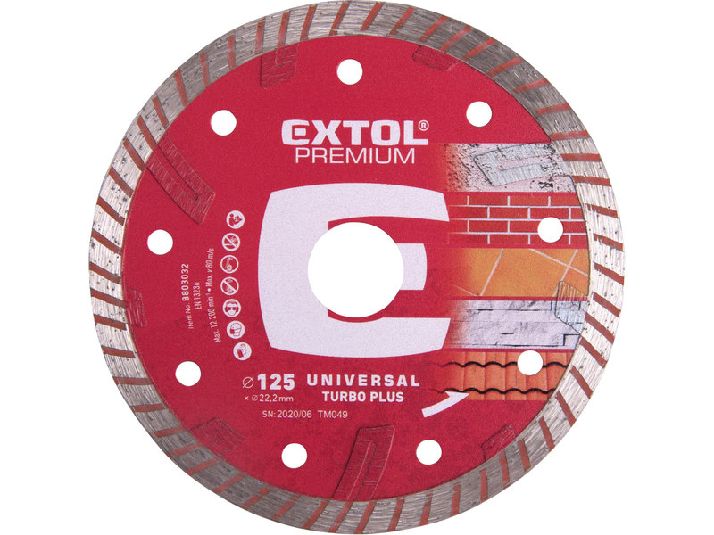 Parametre produktu  Kotúč rezný diamantový Turbo plus, 125mmx22,2mm, suché a mokré rezanie