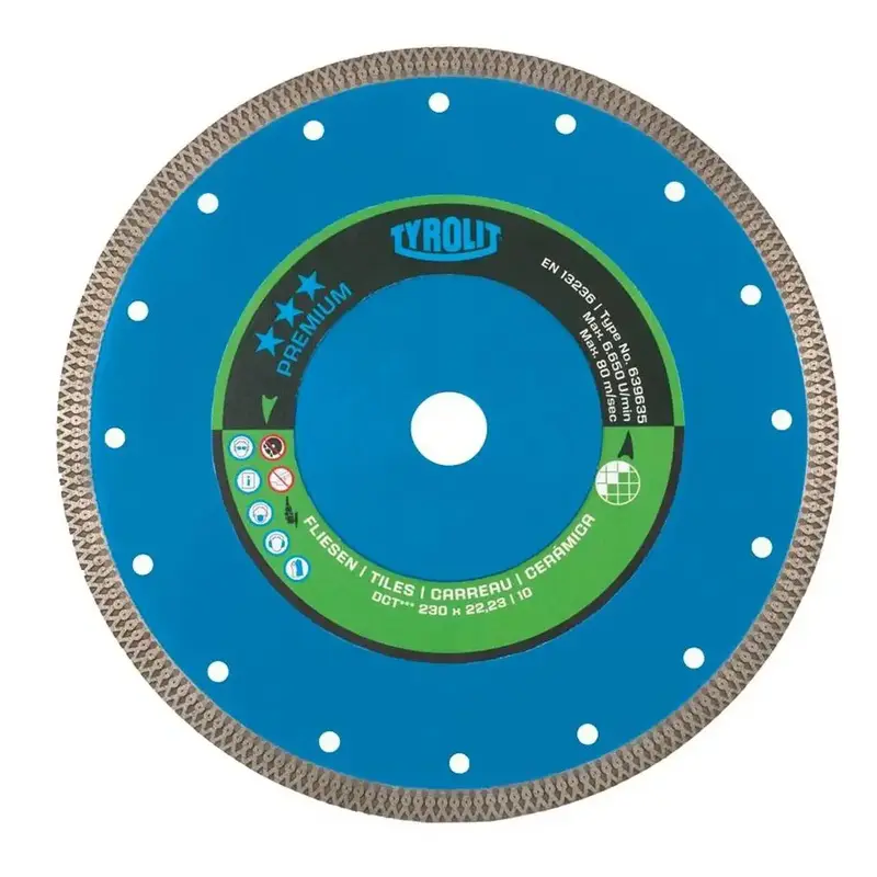 Kotúč je určený na rezanie obkladov a dlažby z tvrdých materiálov, ako je sintrovaná dlažba, keramické obklady, porcelán, pálené tehly a jemná kamenina.